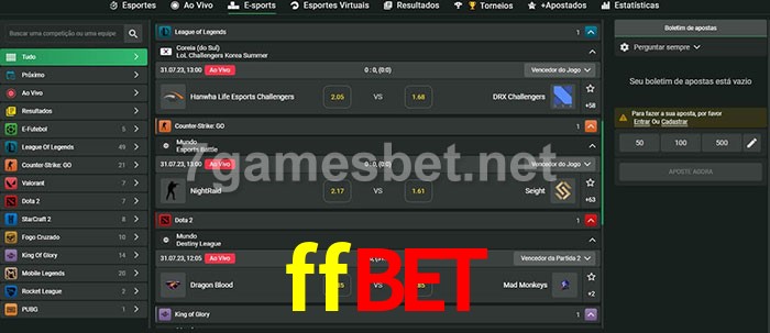 O ffbet oferece uma grande seleção de opções de apostas em e-sports com probabilidades competitivas